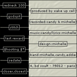 1. redneck 100 2. godspit 3. stitch 4. last reward 5. $hooting $* 6. sedate 7. closer, closest |